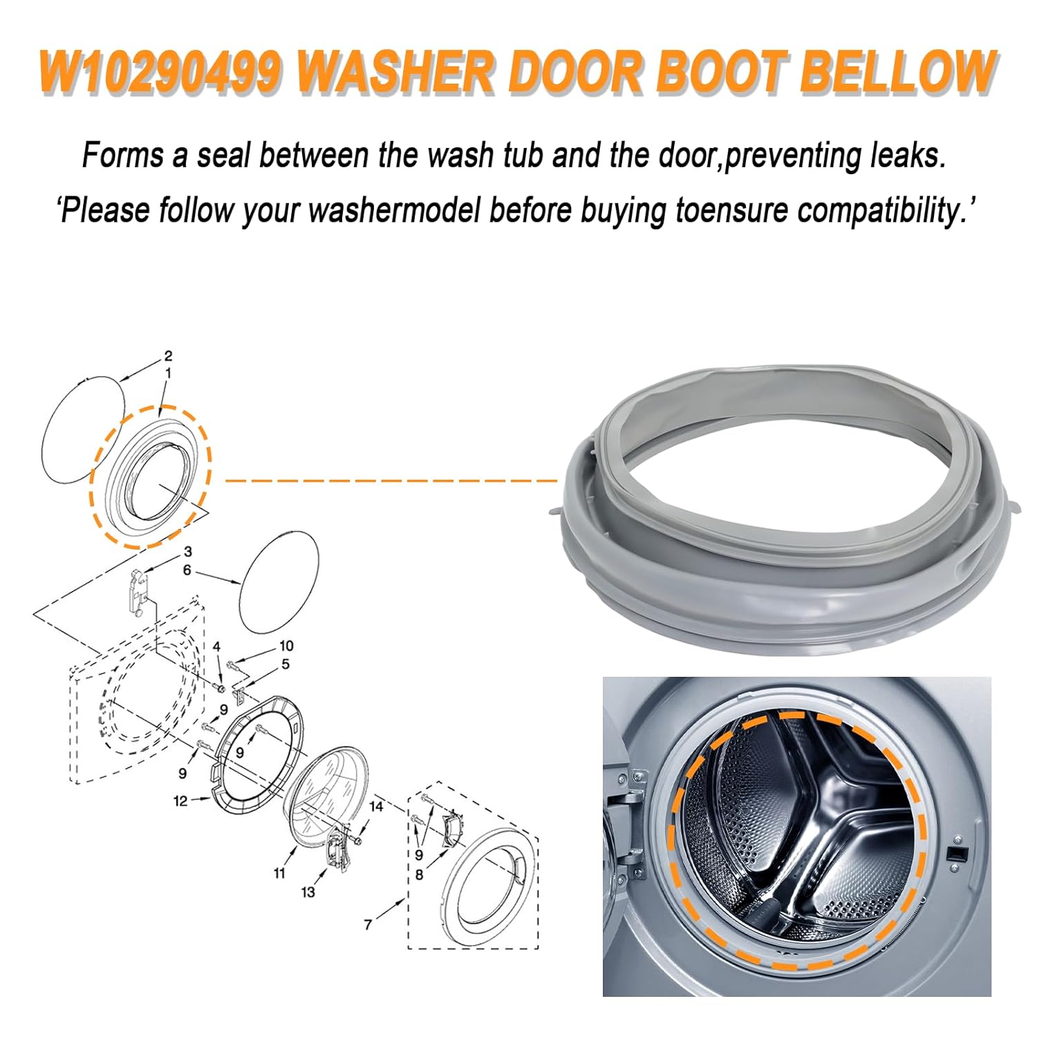 Rétablissez l’étanchéité d’origine de votre lave-linge avec ce joint de porte (manchette) de qualité supérieure, référence W10290499.